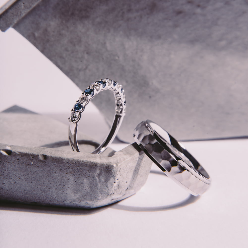 Tantalum Textured Ring+ Refined Sleek Edge Pave Ring