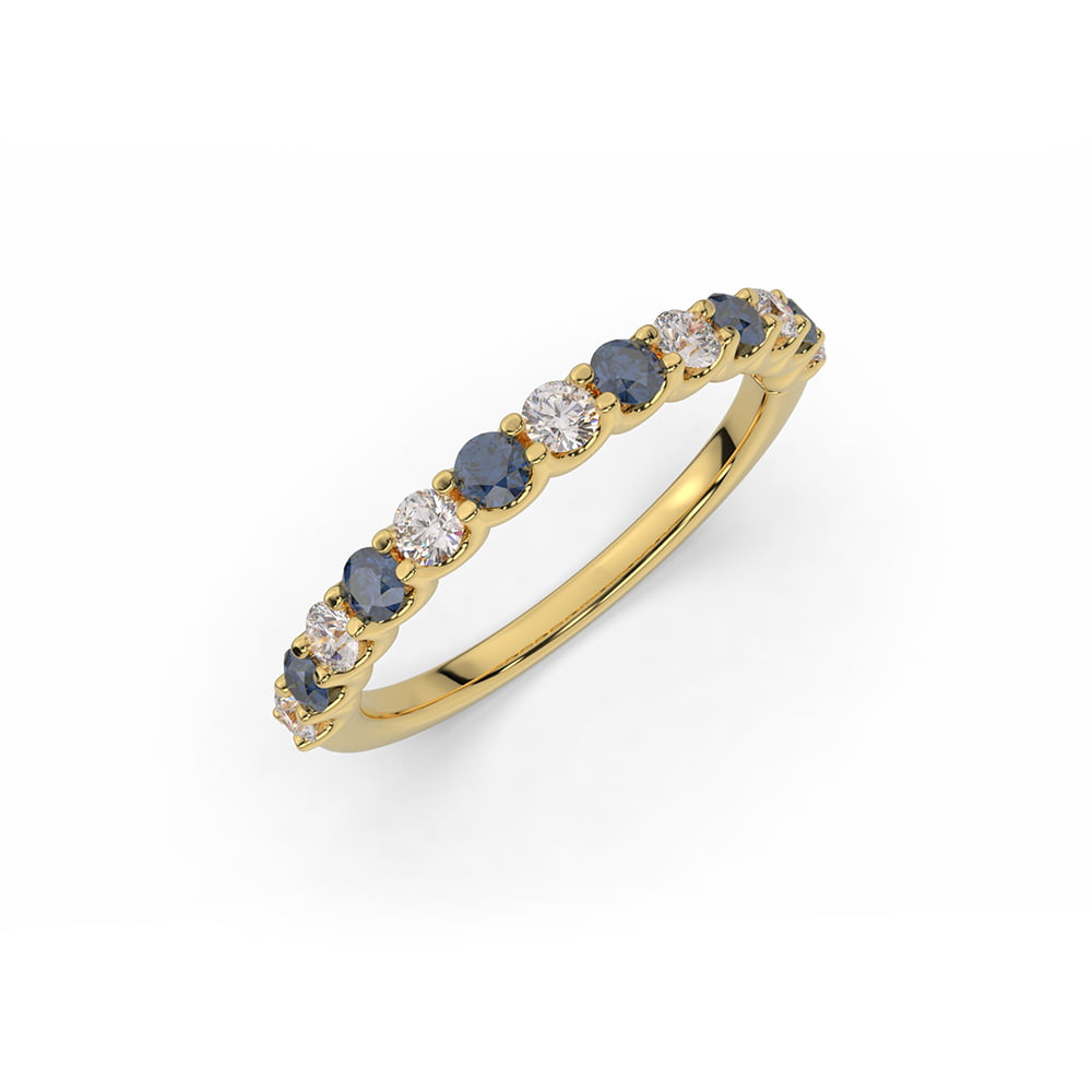 - Diamond/Gem Spec Total Carat: 1/2ctw (0.45-0.50ctw) | Color: F-G & Deep Blue | Clarity: VS
