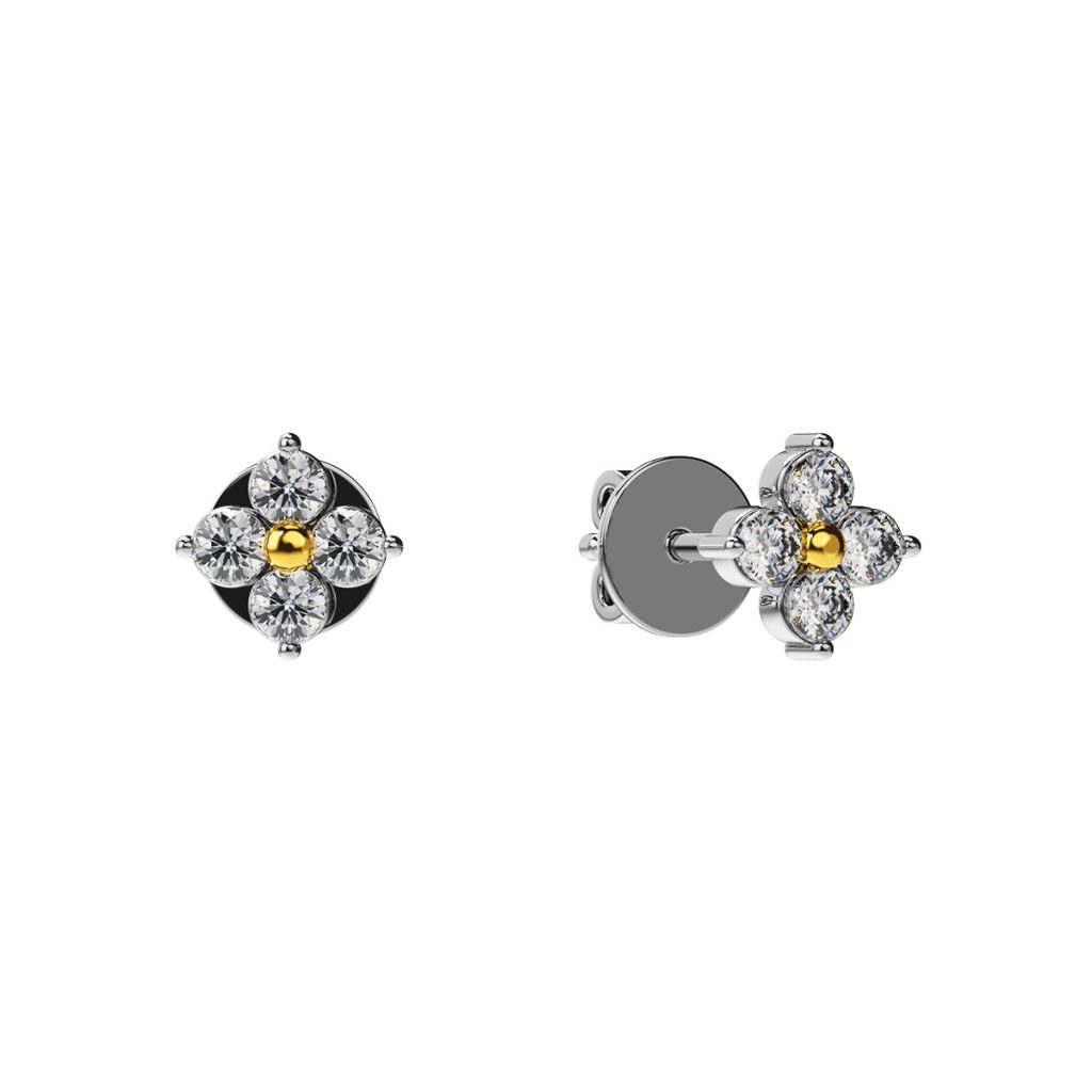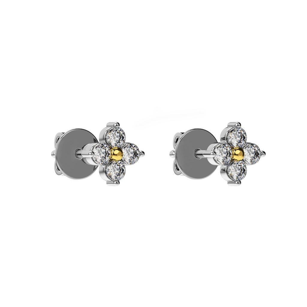 Four Petal Lab Grown Diamond Earrings in Gold